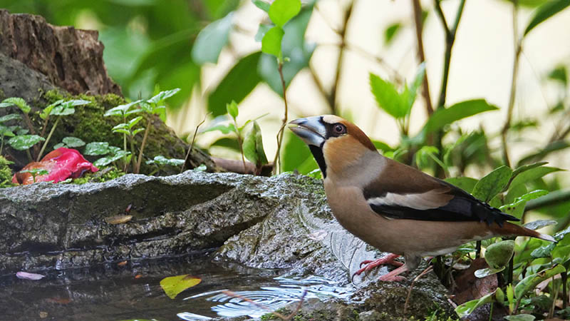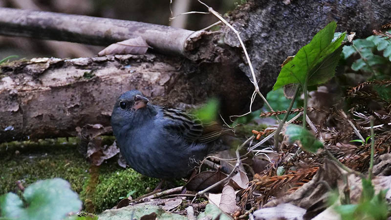 28日の早朝、エサを補充して待つと2羽のクロジの♂が出てきた。