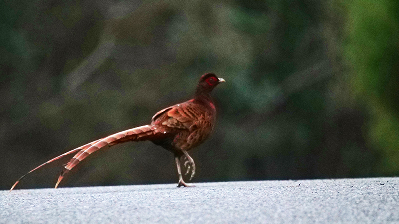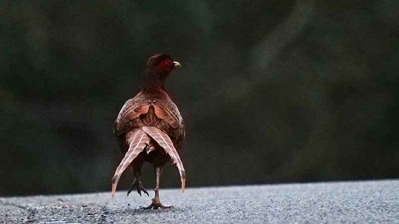 県森、ヤマガラハウスの先のカーブ終わりにアカヤマドリ