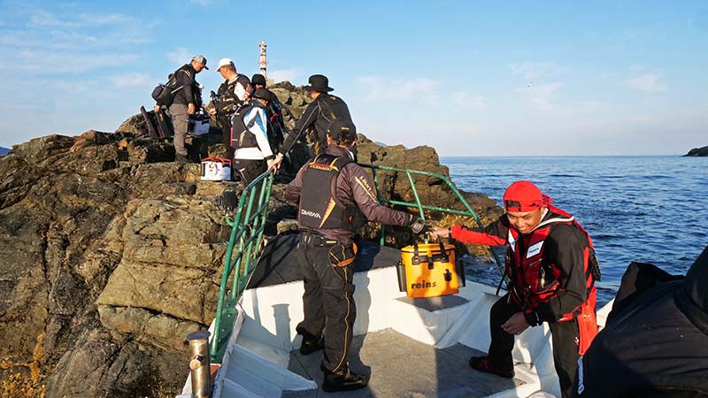 台湾から遠征で来た13名が、米水津の磯でクロ釣りです。