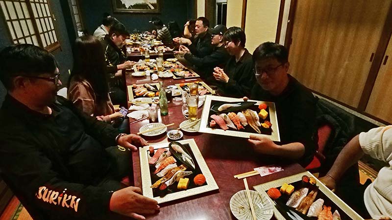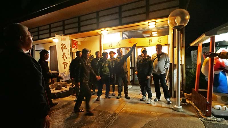 16時のフェリーで戻った後、エトウ釣具で翌日のエサを作り終え、17名で二九八さんの焼肉会で終了し、ルートインへ戻って英気を養いました。