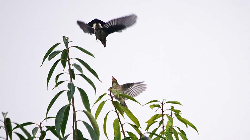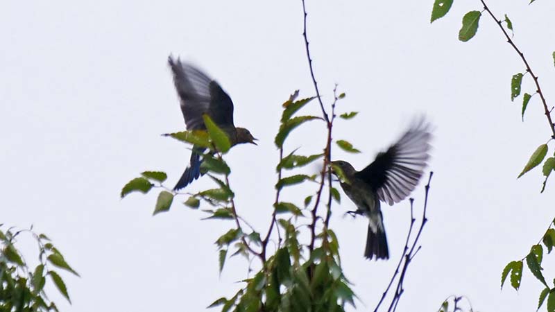 今朝はオオルリ♀と♂の幼鳥がバトルを展開激写!