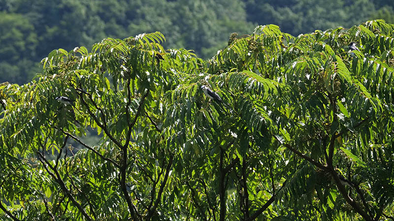 昨日、ヤマガラハウス横のカラスザンショウとクマノミズキを見ると・・