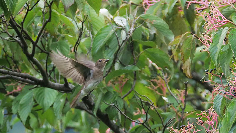秋の渡りの時期に、丁度食べ頃になるのがクマノミズキ。
