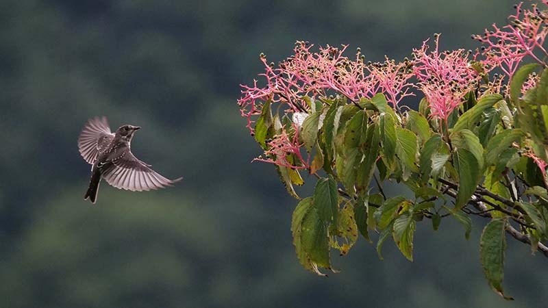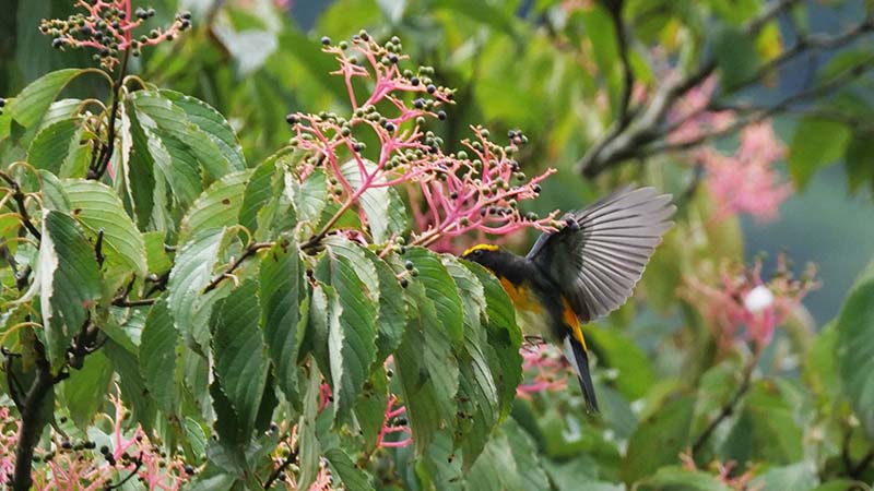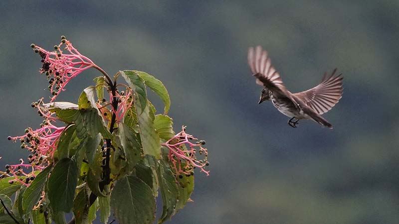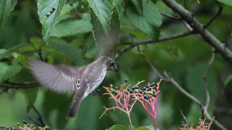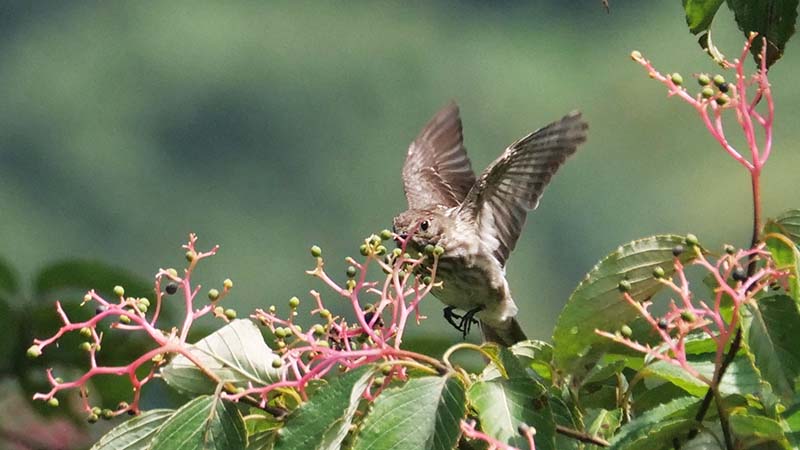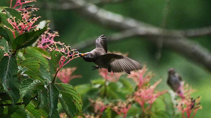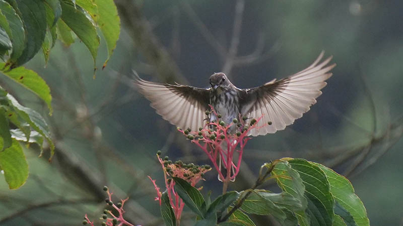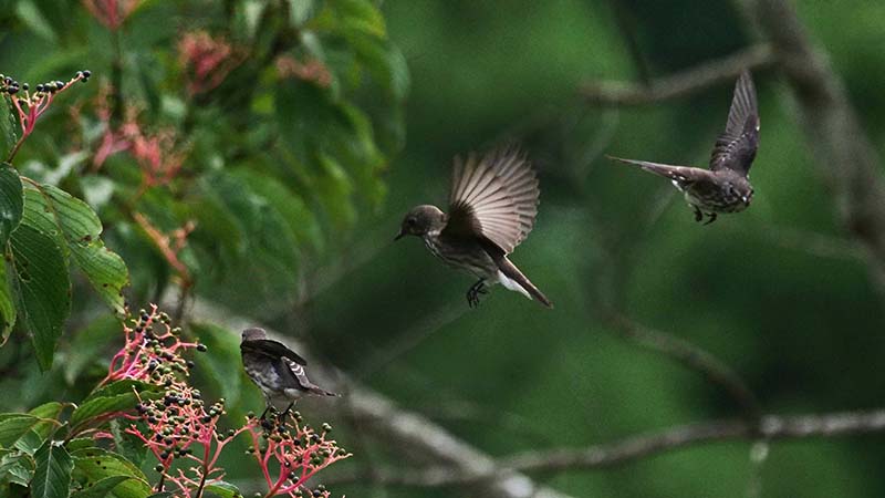 虫が主食の小鳥たちも、長旅の養分補給に実を食べにやって来る。