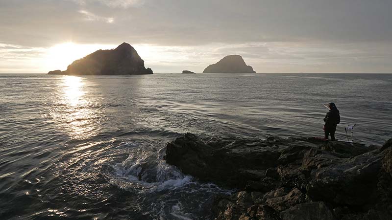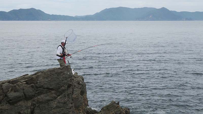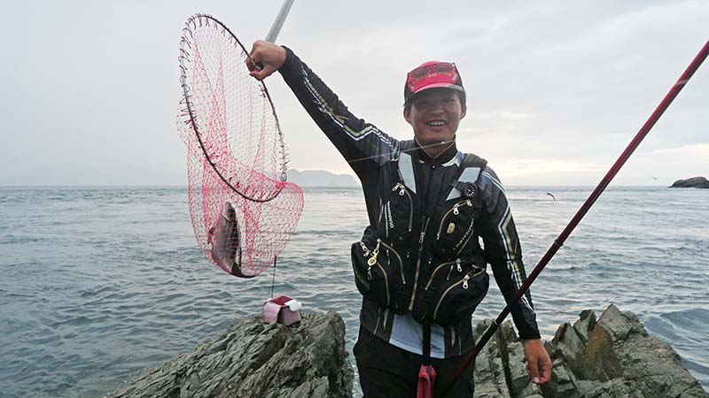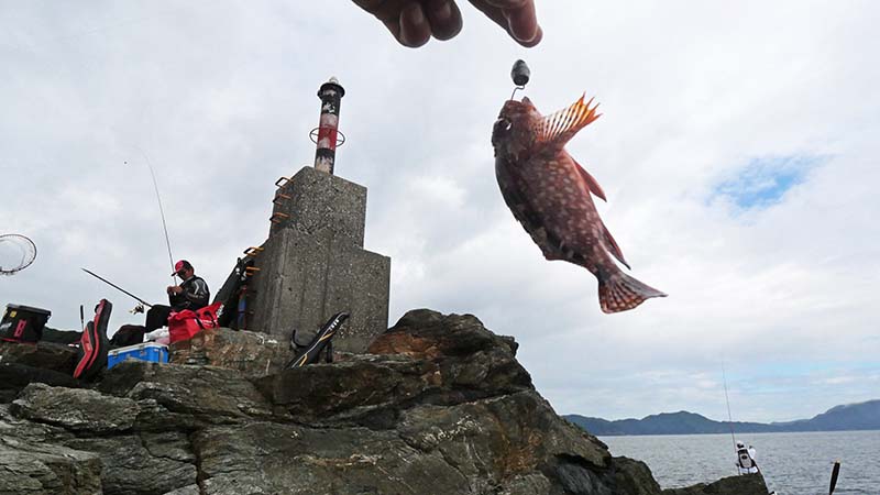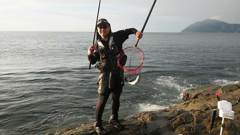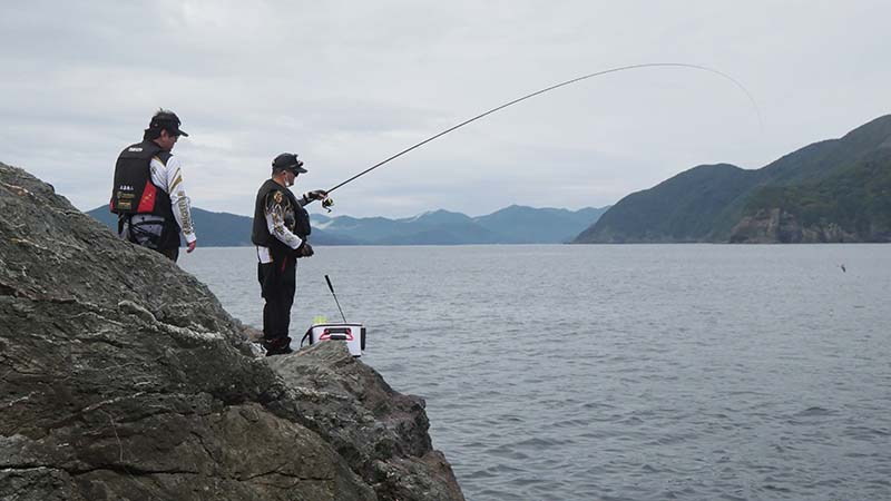 ココへ会員やオブザーバーを含め7人で瀬上がり。釣り座を交代しながら磯の周囲を釣りますが、私は撮影したりアドバイスしたりと気ままな一日です。