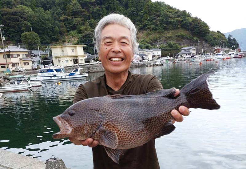 帰港後に着替えて、2.8㎏のオオモンハタと・・