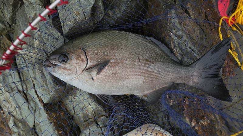 湾内でマダイを狙うと小型が1匹登場。次は沖の石鯛狙いの準備。