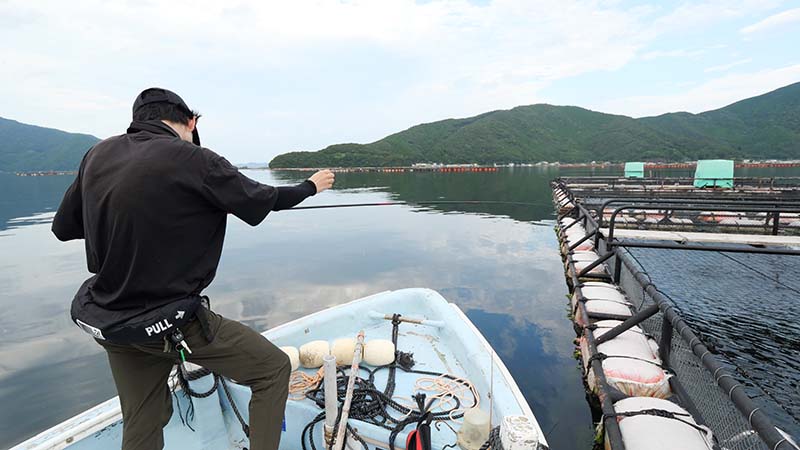 終了前の湾内生簀で3投のマダイ狙いも音沙汰無し。