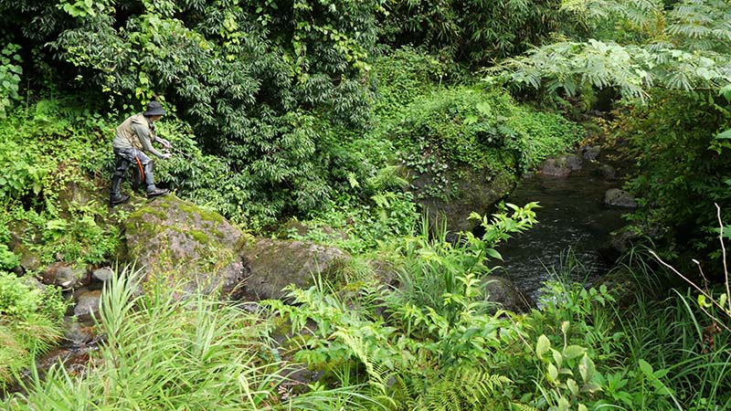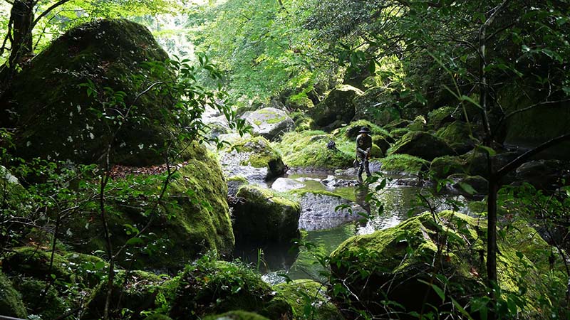 まず最初は、私が昔30㎝級のアマゴを出した陽目渓谷を調査。数ヶ所を狙ったものの、残念ながらアマゴの魚影には出会えなかった。昔は何も無かった場所ですが、現在は観光地として避暑や紅葉探索で賑わう様になっています。