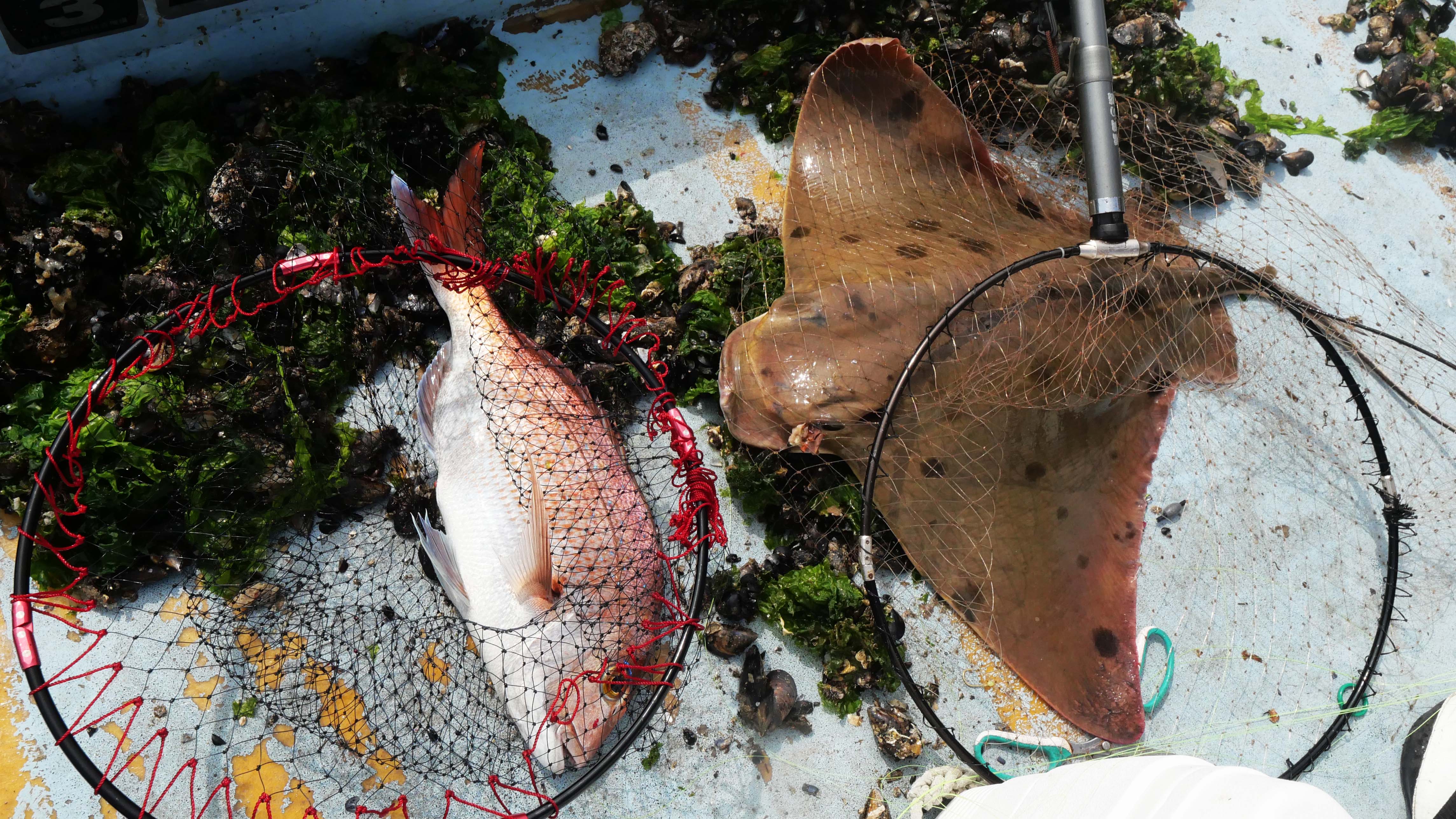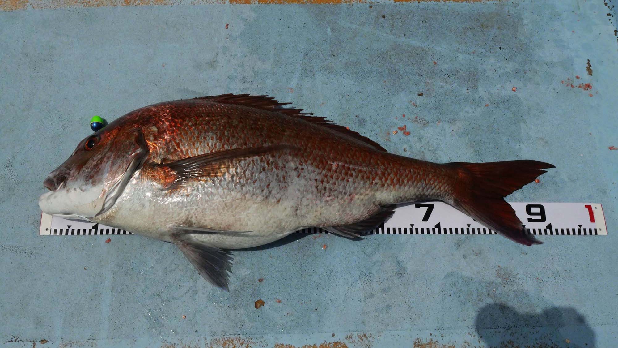 その仕掛けでオオモンハタとマダイをゲット。1枚は道糸の高切れなど。