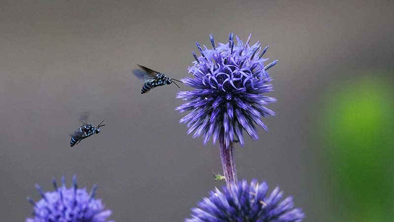 ラベンダー園に行くと、3匹か4匹が植えられたヒゴタイで舞っている。