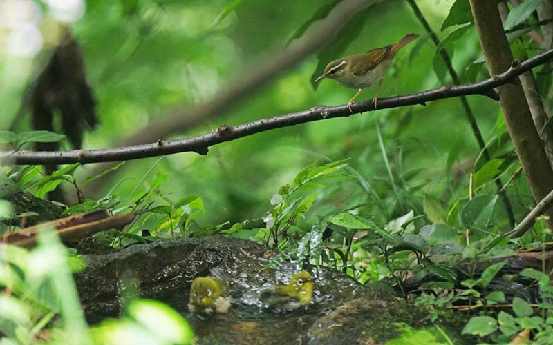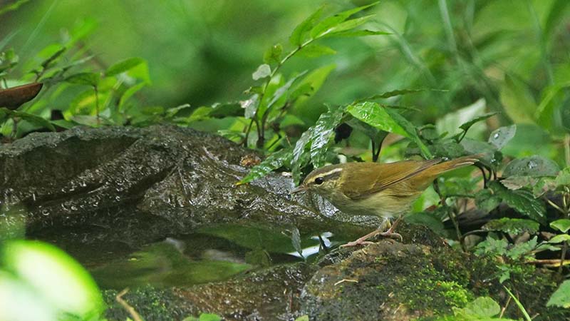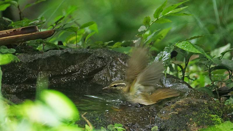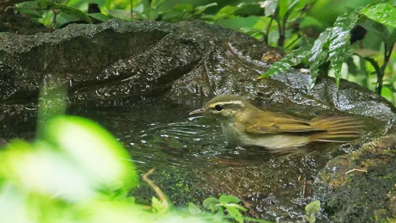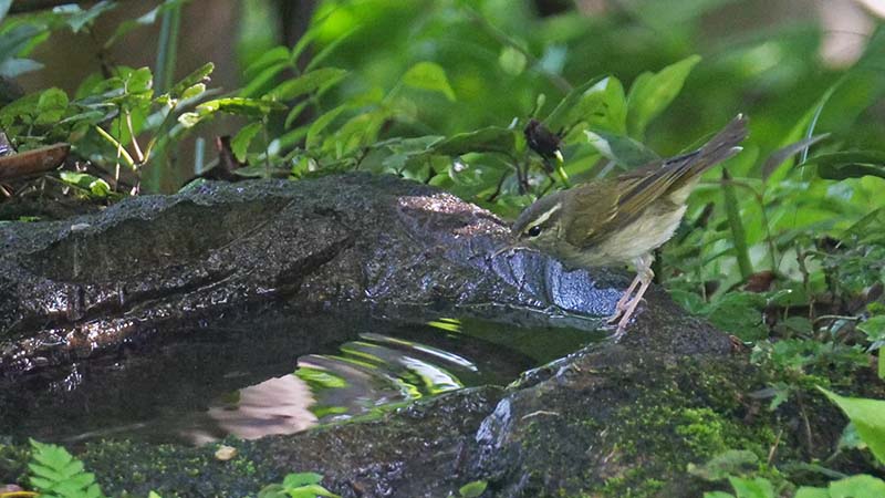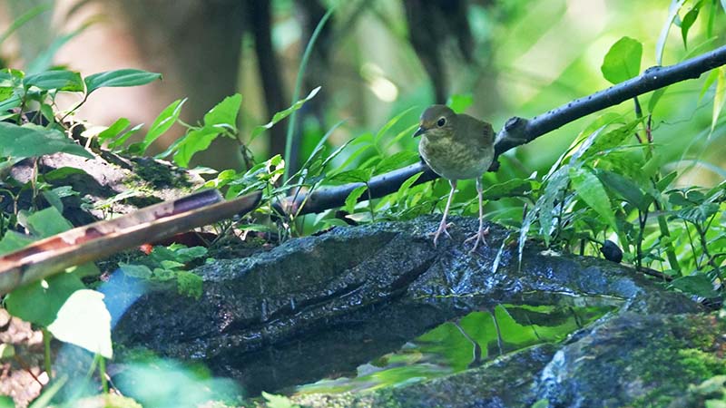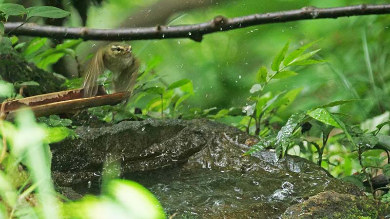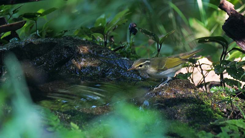 エゾムシクイ 薄ピンクの脚が決め手 水場