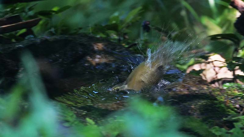 ♂は今年の4月20日に綺麗に撮れており、今回♀の水浴びは初撮影でした。